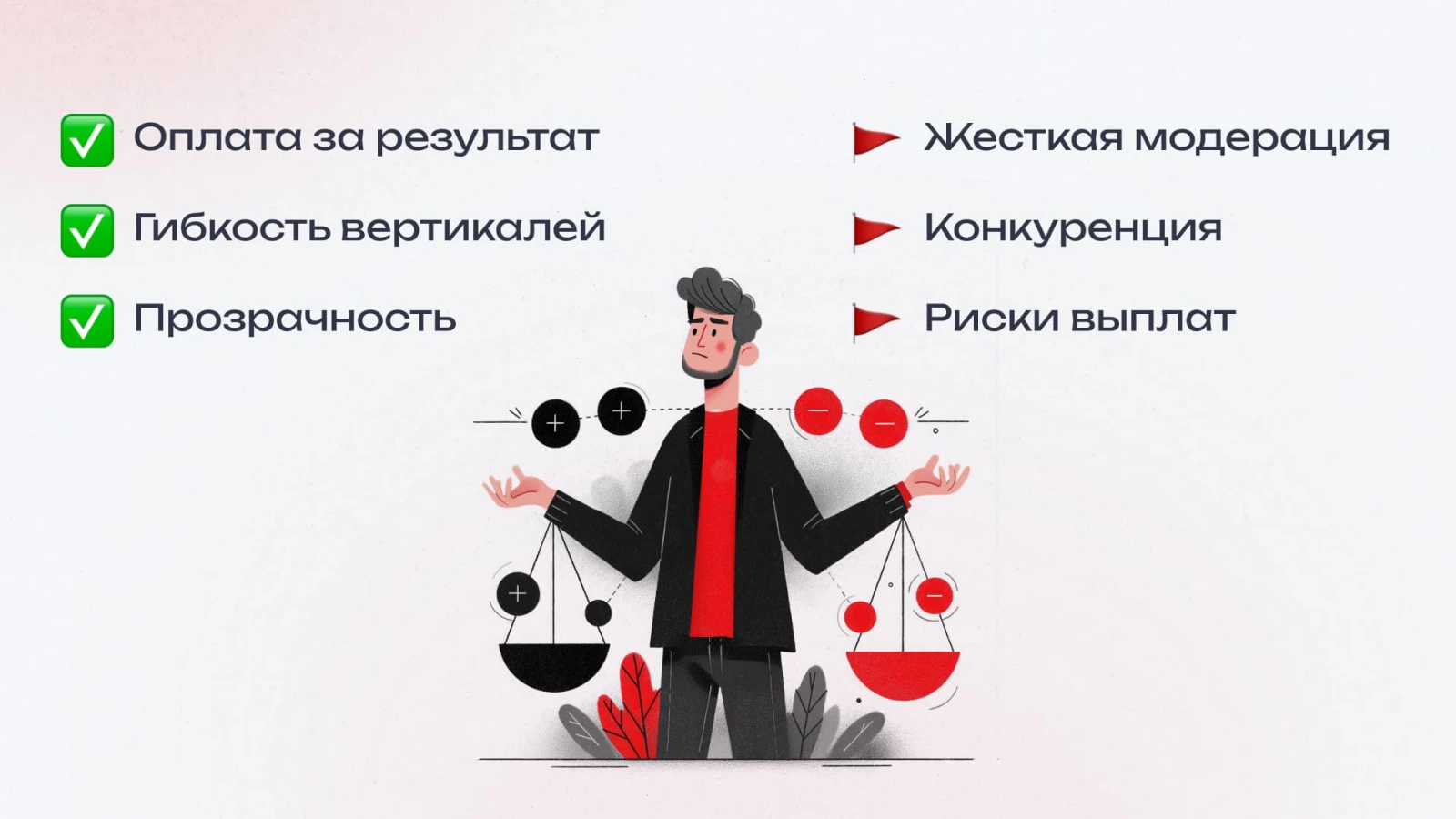 - Минусы: высокая конкуренция и ограничения на рекламу в ряде источников.
