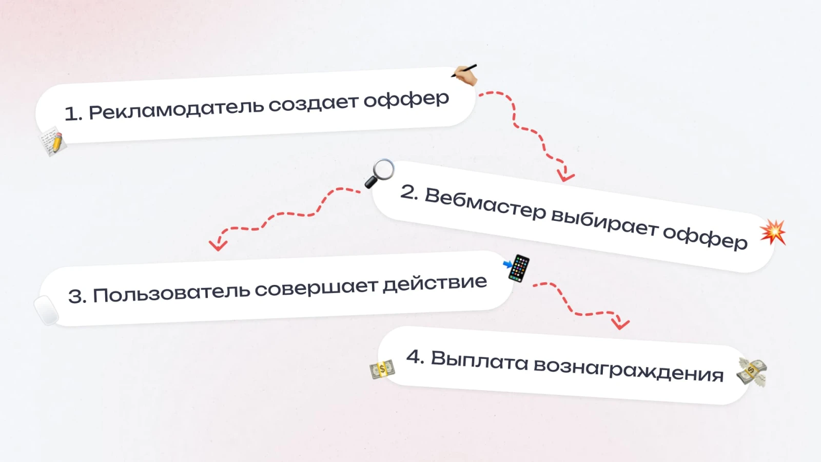 - Партнер получает вознаграждения за результат — именно за факт действия, а не за потраченную рекламу или показы.
