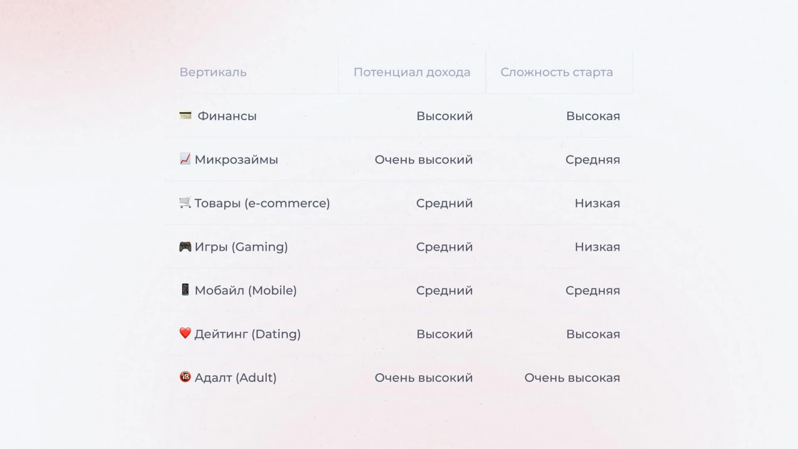 - Конкуренция. В популярных нишах (финансы, микрозаймы, гемблинг) ставки высокие, но и конкуренция сильная. Чтобы удерживать заработок, приходится постоянно тестировать новые подходы.
