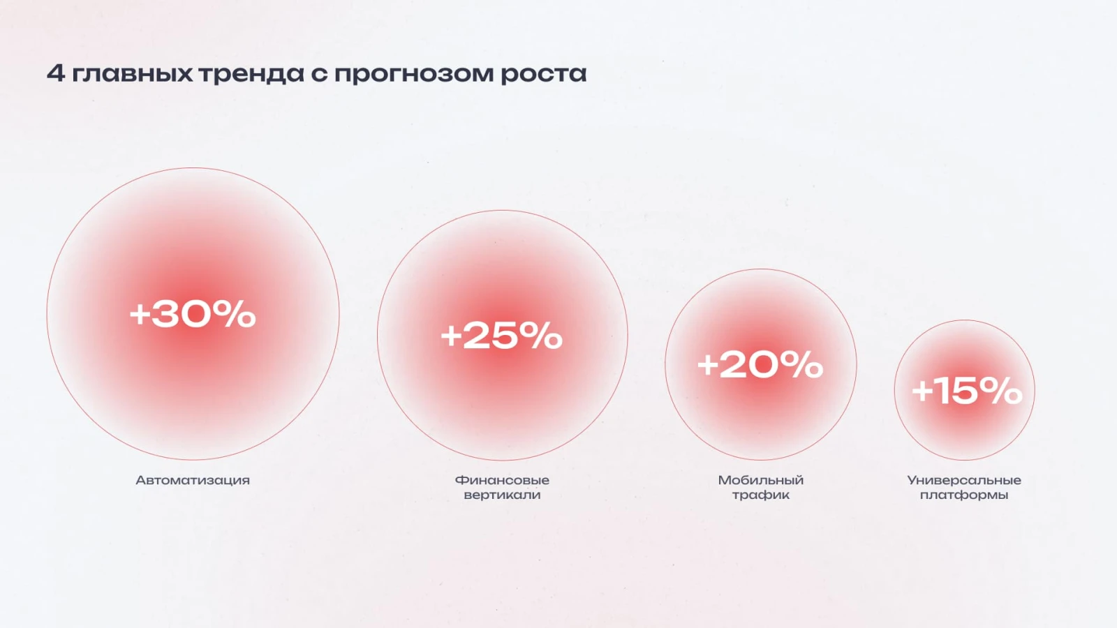 Все больше новичков заходят в арбитраж, а значит, площадки становятся перегретыми. Это вынуждает искать новые форматы продвижения: работать с SEO, YouTube, мессенджерами, использовать нативную рекламу. Те, кто умеет комбинировать источники, получают лучший результат.