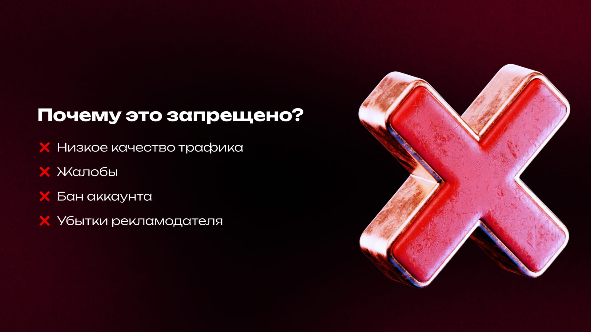 - Деньги на ветер: Привлечённые обманом пользователи не покупают и не возвращаются. ROI уходит в минус.