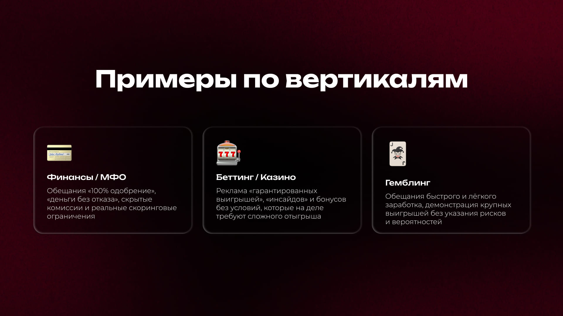 - Гемблинг: «Джекпот ждёт именно тебя!» — создаёт ложное ощущение, что шансы выиграть выше, чем есть на самом деле.