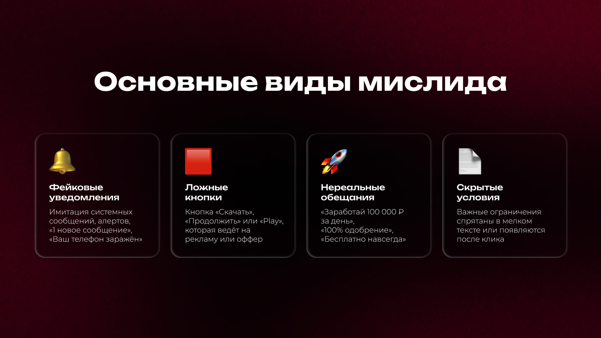 Мислидинг бывает разным, но суть одна — пользователь чувствует себя обманутым после клика. Вот самые частые уловки: