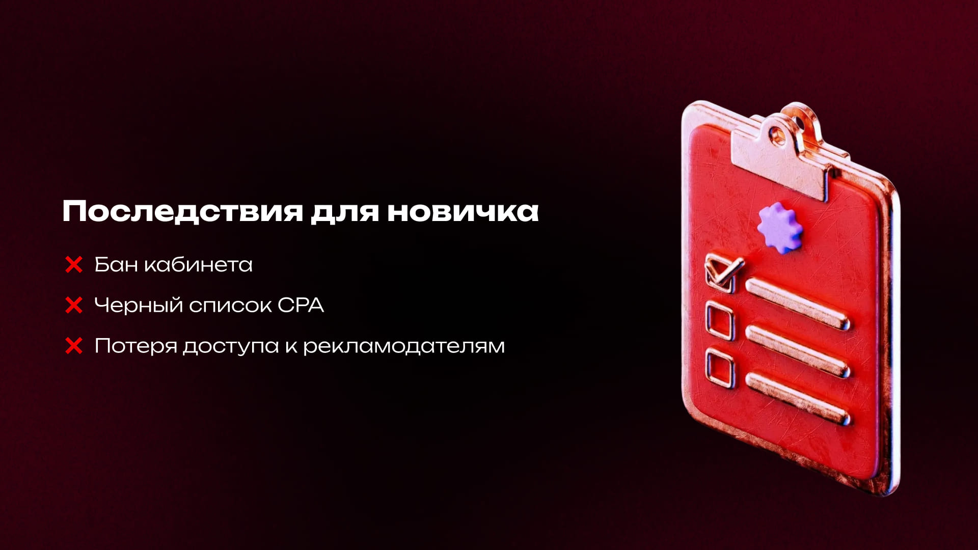 - Чёрный список в партнерских программах (CPA-сетях). Вас забанят по паспорту и платёжным данным.