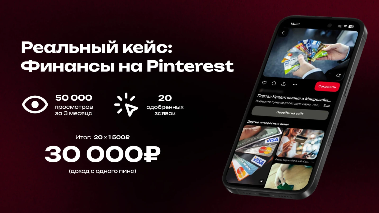 - Потенциал дохода: Один такой «вечнозелёный» пин, набравший 50 000 просмотров за 3 месяца, может принести 15 000 – 30 000 рублей при комиссии 500-1500 ₽ за одобренную заявку.