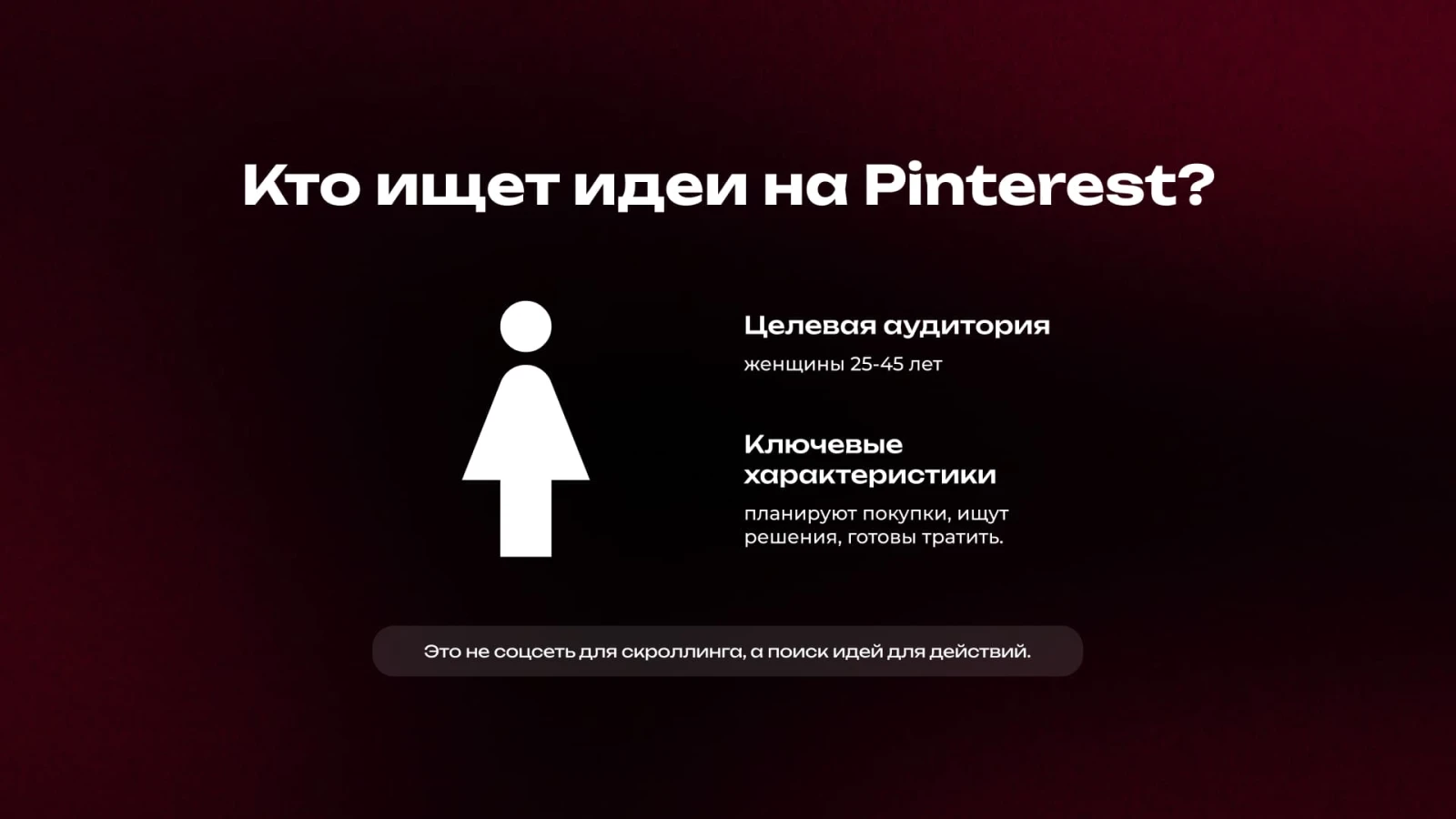 - Портрет аудитории: Более 70% пользователей — женщины в возрасте 25-45 лет. Это не подростки, а взрослые люди с покупательской способностью, которые используют Pinterest для планирования крупных и мелких трат.