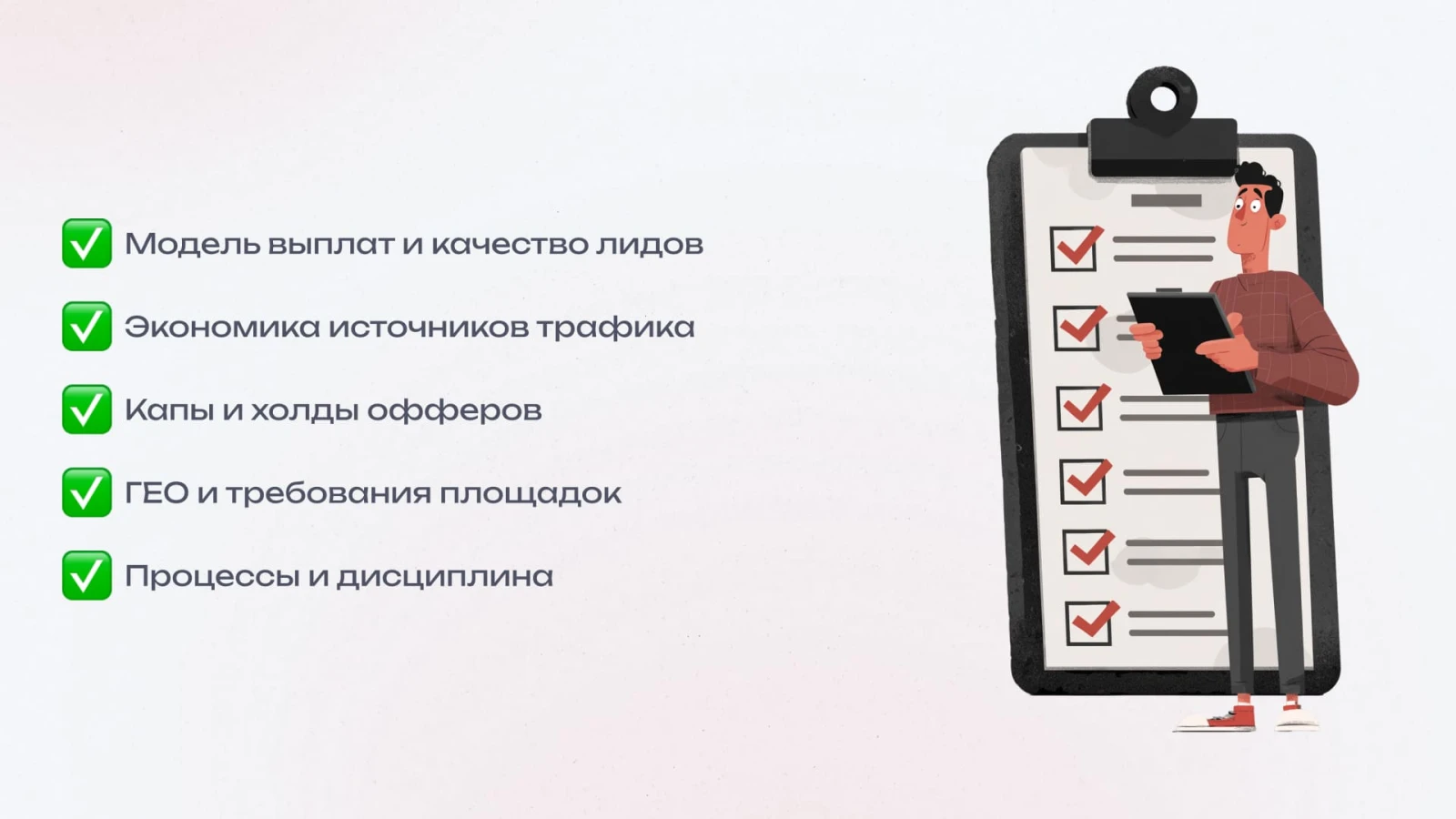 Коммуникации. Говорить на одном языке с менеджером партнёрской сети и командой. Своевременно согласовывать посадочные и креативы, заранее уточнять капы и условия. Спокойно объяснять, почему именно такое решение по бюджету или остановке кампании.