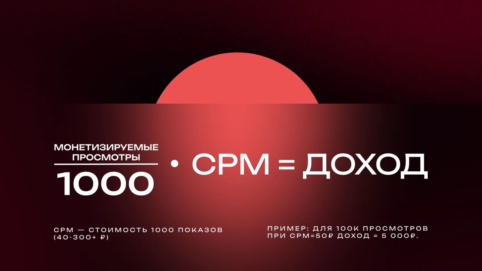 Самый частый вопрос: какую сумму можно получить за 1000 просмотров? Ответ зависит от ключевой метрики — CPM (Cost Per Mille, стоимость за тысячу показов рекламы).