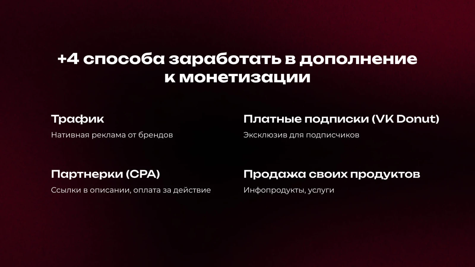Официальная монетизация — надежный, но не единственный источник дохода. Для серьезного заработка важно выстраивать многоуровневую модель.