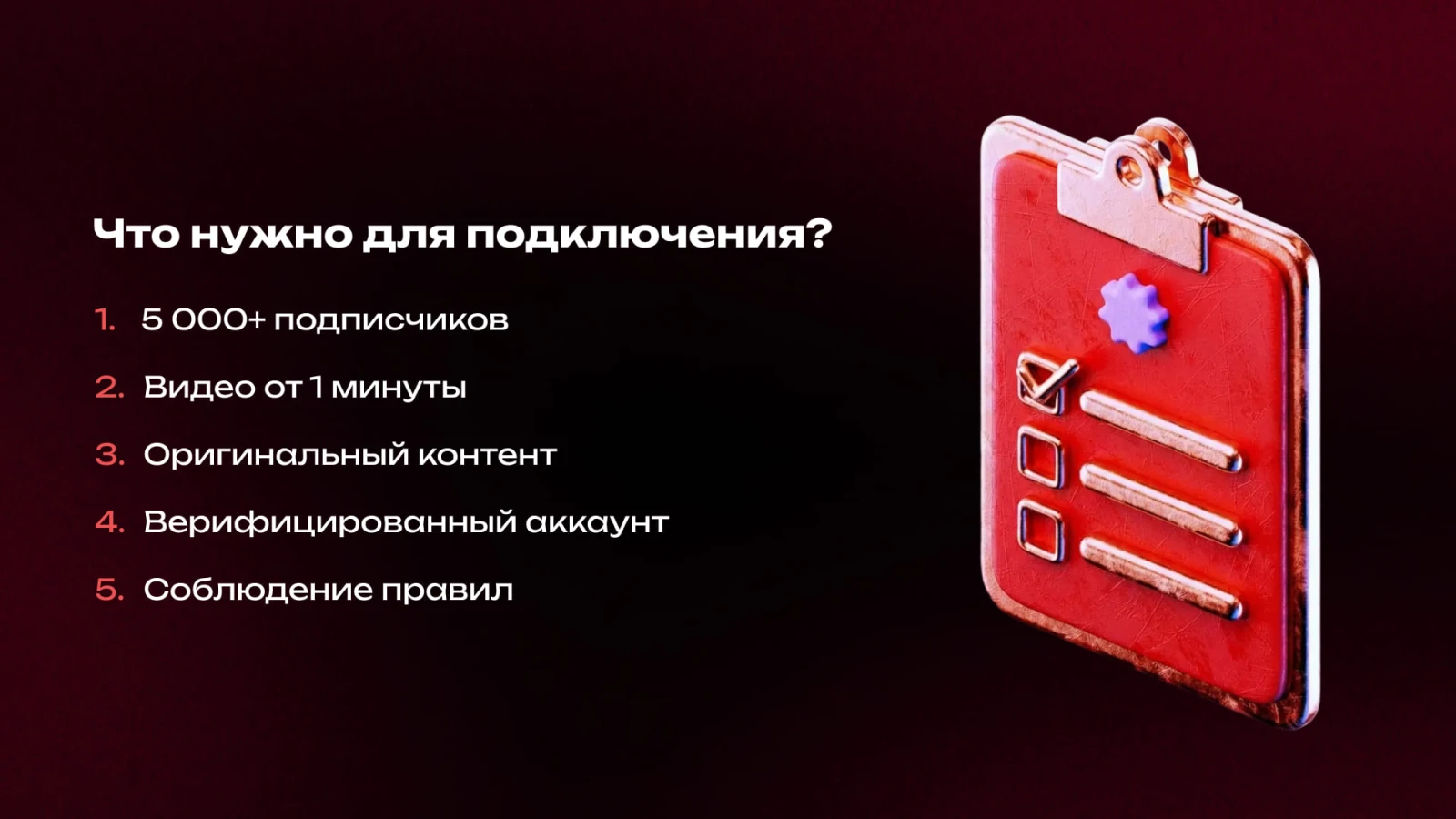 - Оригинальность контента: Видео должны быть созданы вами или вашей командой. Повторные загрузки чужих материалов, пиратский контент и копипаст приведут к отказу.